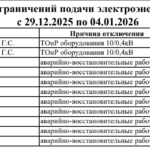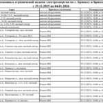 График возможных ограничений подачи электроэнергии по Брянской области на ближайшую неделю, с 29 декабря по 4 декабря: