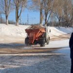 как видим на фото, накатанные дорожки посыпали песком. Катающихся на этой территории уже не видно.