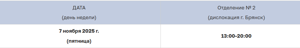 7 ноября регистрационное отделение МОРЭРиТН, расположенное по адресу: г. Брянск, пер. Московский, 7 будет работать по измененному графику