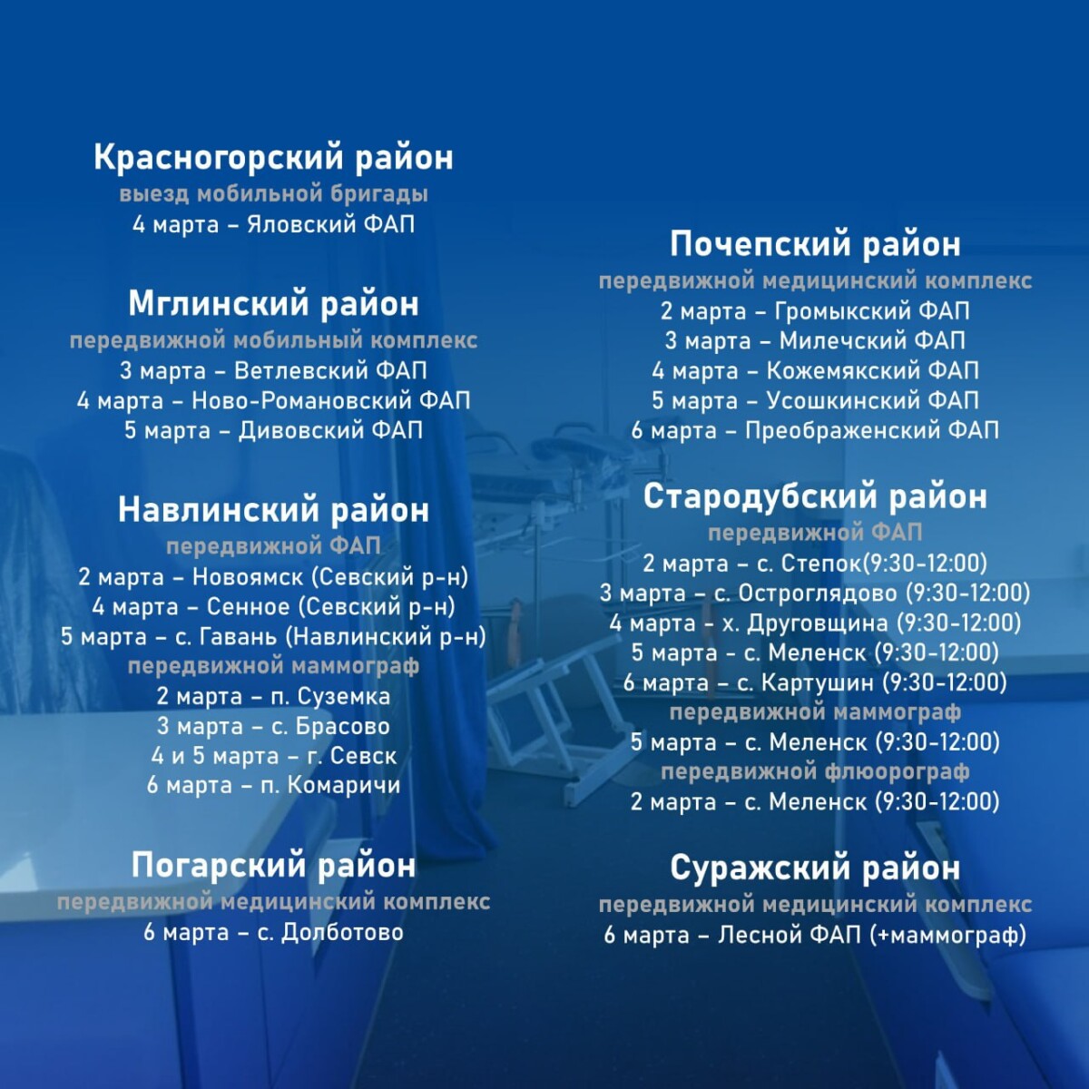 График работы в Брянской области передвижных медицинских комплексов со 2 по 8 марта