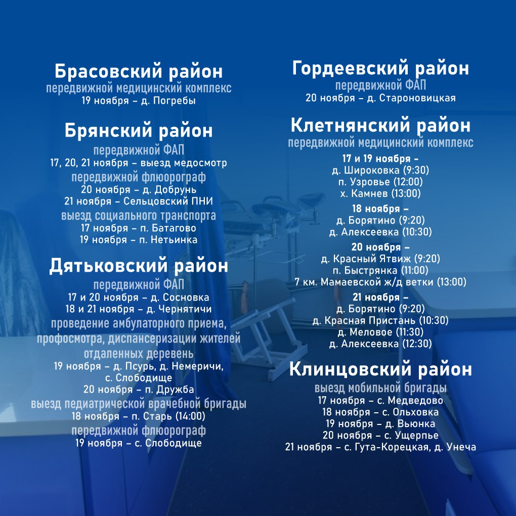 График работы в Брянской области передвижных медицинских комплексов с 17 по 23 ноября