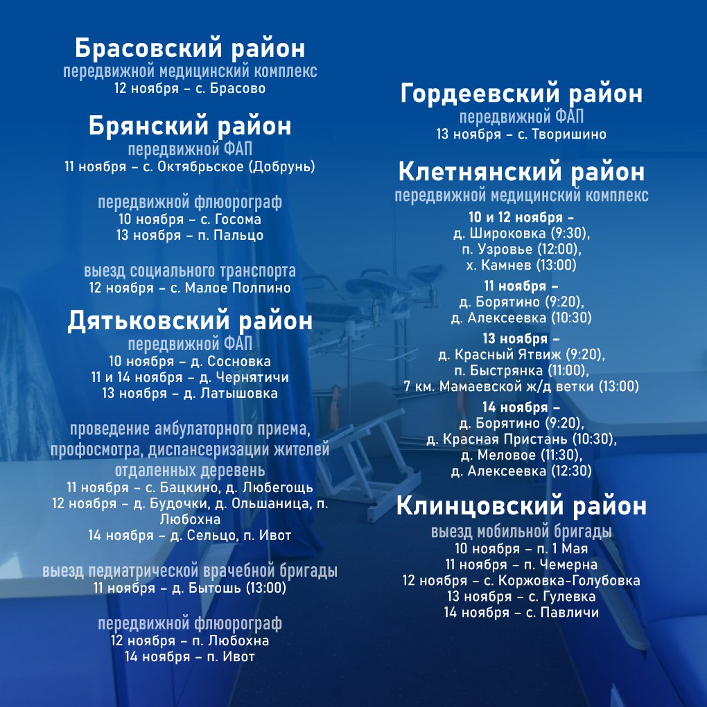 График работы передвижных медицинских комплексов в Брянской области с 10 по 16 ноября