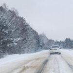 Не только на ровных участках, но и на опасных поворотах, на мостах — везде снежные валы и наносы, но посыпаны песко-соляной смесью.