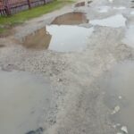 Местные жители говорят, невозможно уже терпеть — улица Грибоедова вся в ямах, которые в дождь заливает. Местами вода стоит по колено!