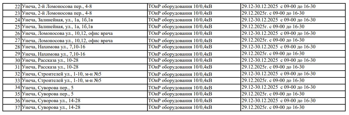 Плановые отключения электричества в Брянской области